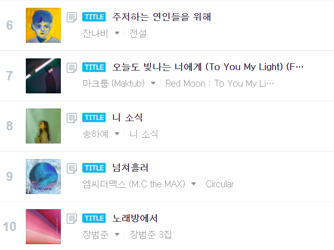 지니차트기준 1위부터 10위 노래의